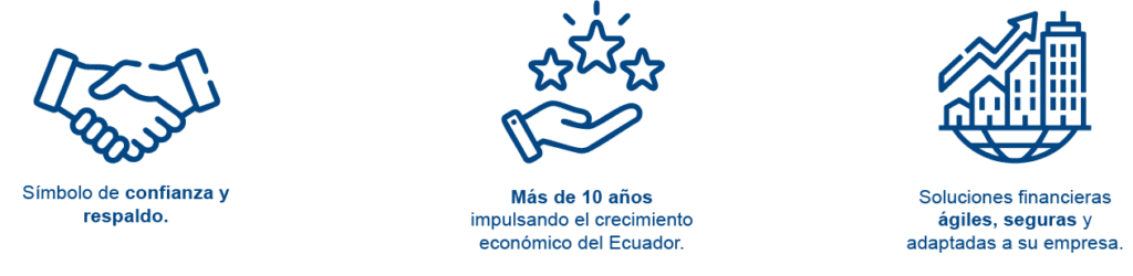 Nuestro propósito es claro: fortalecer a las empresas ecuatorianas, brindando herramientas financieras que les permitan avanzar con confianza, respaldadas por una marca sólida y reconocida.